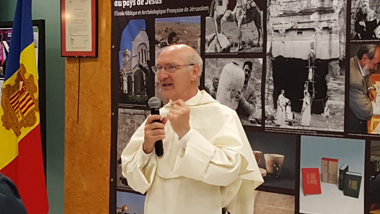 Mons. Vives va posar en relleu en el seu parlament la importància d’exposicions com aquesta, que mostren els nostres orígens com a comunitat cristiana. Tots els cristians hem nascut a Terra Santa, la nostra matriu és la Terra Santa, i l’Església de Jerusalem és pels cristians la nostra Església mare, a qui estimem i amb la que sempre ens sentim vinculats. El Copríncep destacà com cada any ell personalment, delegat pels Bisbes de la Conferència Episcopal Espanyola, visita Terra Santa participant de la Coordinadora de Bisbes en suport de Terra Santa que lideren els Bisbes d’Estats Units, Canadà, Anglaterra i Gal·les. I que aquesta presència seva anual li ha fet copsar al llarg dels anys la importància dels diferents ritus i esglésies que conviuen a Terra Santa. En aquest sentit, destacà com l’exposició, recollia amb bellesa els nostres germans més antics. També va voler destacar com l’Arxiprest d’Andorra, Mn. Ramon Sàrries, havia realitzat els seus estudis a Jerusalem i com era un expert guia de pelegrinatges que intentava, com el P. Eechkout, fer créixer l’amor als cristians de Terra Santa i divulgar-lo entre les nostres terres. Finalment,