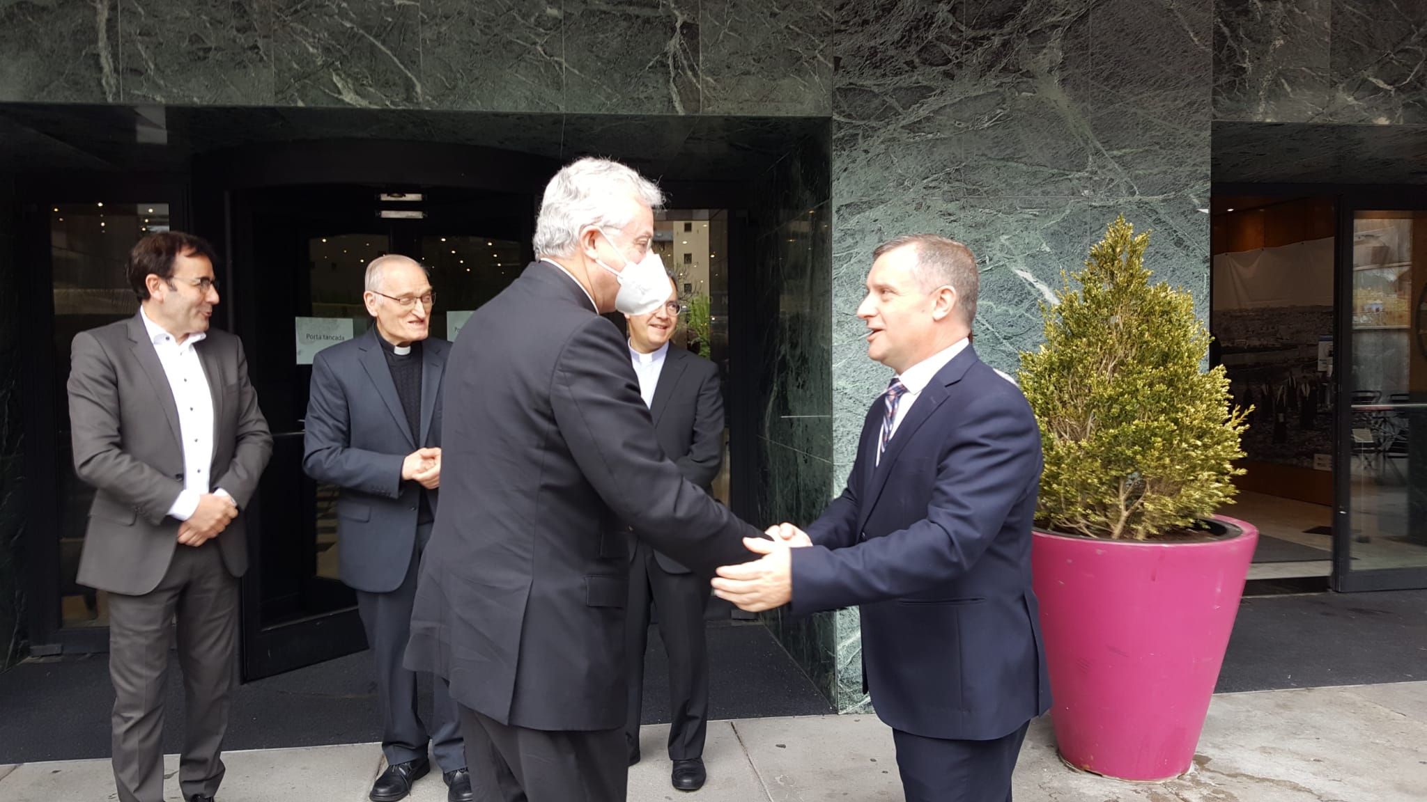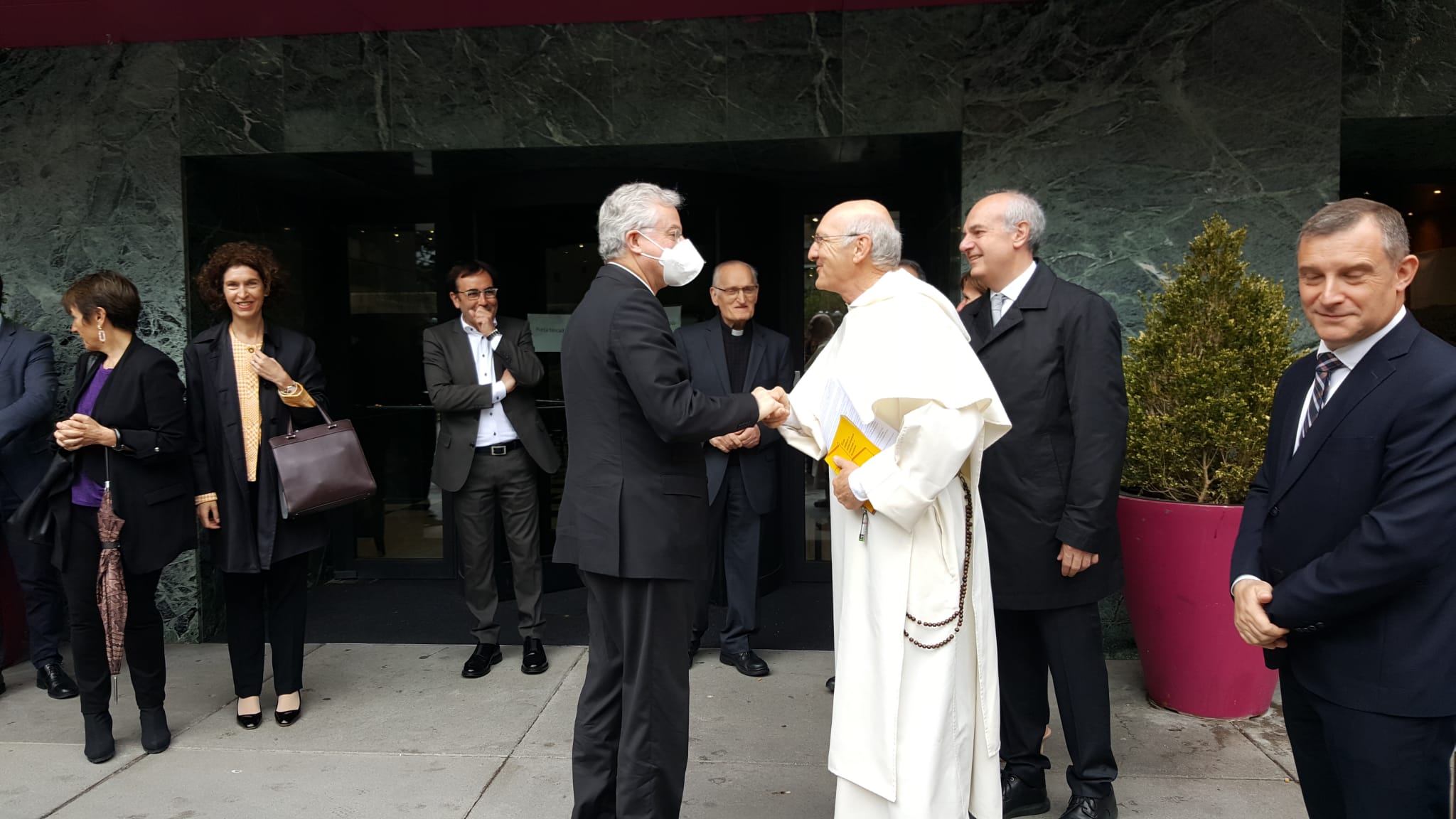 El copríncep episcopal va saludar a la seva arribada al Comissari de l’exposició, el P. Christion EEckhout O.P., a qui va presentar les Autoritats andorranes assistents a l’acte. També es feren presents a l’acte i van saludar l’Arquebisbe a la seva arribada l’Arxiprest de les Valls, Mn Ramon Sàrries, el Rector de Sant Julià de Lòria, Mn Pepe Chisvert, i el Vicari de Pastoral, Mn Antoni Elvira, així com Mn. Joan Fenosa, Rector d’Ordino, on enguany Mons. Vives està fent la Visita Pastoral.