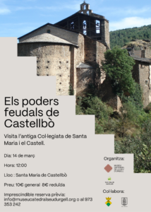 El Museu–Catedral de la Seu d’Urgell i l’Entitat Municipal Descentralitzada (EMD) Vila i Vall de Castellbò han organitzat per aquest dissabte 14 de març, a les 12h, la visita guiada “Els poders feudals de Castellbò”, una proposta que permet descobrir el poble com un autèntic conjunt històric on el castell i la col·legiata de Santa Maria s’expliquen mútuament.