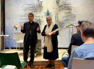La trobada ha estat presidida pel Bisbe Mons. Josep-Lluís Serrano, que estava acompanyat per Mn. Pepe Chisvert, Delegat diocesà d’Ensenyament del Bisbat d’Urgell, i ha tingut com a lema “Identitat i Missió de l’Escola Cristiana”. La jornada s’ha iniciat a la capella d’Anna Maria Janer, on hi ha el sepulcre de la Beata, amb unes paraules de benvinguda de Mons. Serrano, que ha recordat justament que en aquest dia s’esqueia l’aniversari de la beatificació de la Mare Janer i que ha dirigit la pregària posterior. Després el grup s’ha desplaçat a una sala de treball. La sessió de treball ha estat concebuda com un espai de reflexió compartida sobre el paper i els reptes de l’escola cristiana en el segle XXI. Hi han assistit els directors i coordinadors de pastoral de les diverses escoles cristianes de la diòcesi, i com a ponents han participat la Secretària General de la FECC, Sra. Meritxell Ruiz, el Cap d’Àrea Pastoral i Socioeducativa de la FECC; Sr. Eloi Aran.