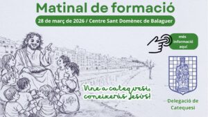 La Delegació de Catequesi del Bisbat d’Urgell organitza una matinal de formació que tindrà lloc el dissabte 28 de març al Centre Sant Domènec de Balaguer. Les persones interessades poden formalitzar la seva inscripció a la seva parròquia, i la data límit és el dimarts 24 de març.
