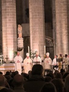 L’eucaristia va ser presidida pel Cardenal i Arquebisbe de Barcelona, Mons. Joan Josep Omella, i concelebrada pel bisbe de Vic, Mons. Romà Casanovas, el bisbe d’Urgell, Mons. Josep-Lluís Serrano, junt una vintena de preveres vinculats a la Companyia. La basílica es va omplir de germanes teresianes, catequistes, famílies, professorat, alumnat i laics compromesos amb la missió teresiana, així com representants d’entitats col·laboradores. En la seva homilia, el Cardenal Omella va recordar la fecunditat de l’obra d’Enric d’Ossó i va posar l’accent en la centralitat de la pregària, la catequesi i l’educació cristiana. També va destacar que el cor de la missió teresiana és formar no només intel·ligències, sinó també cors, i va convidar la comunitat a continuar l’obra de Sant Enric amb la mateixa passió i generositat.