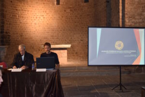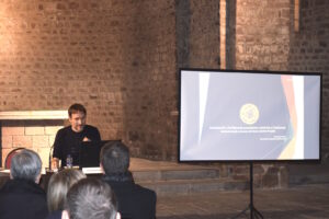 En su intervención, el Dr. Duran ha explicado la tarea del orfebre, el artista que trabaja con materiales preciosos y que define sus creaciones a partir de las cualidades y posibilidades expresivas y estéticas de dichos materiales. También ha repasado los materiales utilizados en la Cataluña románica; notablemente diversos, pero caracterizados todos por la suntuosidad y la riqueza, o al menos por la apariencia de dicha riqueza. Ha ido desgranando materiales: la madera como elemento básico para las estructuras, sobre todo las más grandes, para dar cuerpo, ligereza y también abaratar los costes de las piezas; el oro y la plata, de uso minoritario por su coste y difícil acceso; el estaño, el cobre. Se trataba de hacer posible la admiración estética y su función litúrgica. Un elemento muy importante en la orfebrería medieval es su fundamento en el reciclaje, con la reutilización y la fundición de materiales debido a la escasez de metales en circulación.