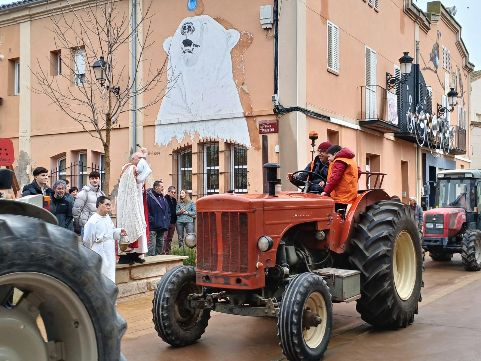 Como manda la tradición y la devoción a San Antonio, su imagen encabezó el primer tractor, que este año llevaba también en la carroza los lotes de la cesta que la Colla de Tractoristas sorteó. Uno tras otro, los tractores fueron bendecidos en la plaza Pius XII, frente a la iglesia parroquial, acompañados de un buen grupo de personas que quisieron participar, un año más, en la fiesta. La bendición estuvo presidida por Mn. Jaume Mayoral, Arcipreste del Urgell Medio, encargado de bendecir los vehículos agrícolas, con el alcalde de Penelles, Sr. Eloi Bergós, encabezando también el acto.